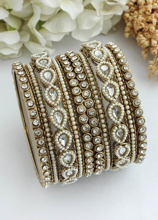 टी4 ज्वेल्स द्वारा ड्रॉप मिरर कड़ा और मोती के साथ चूड़ी सेट